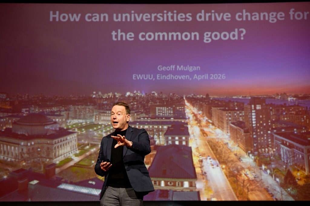 Een van de hoogtepunten was de keynote van Geoff Mulgan: hij daagde ons uit om de rol van universiteiten te heroverwegen. Hij betoogde dat academische instellingen zich niet alleen moeten richten op het analyseren van het heden of het begrijpen van het verleden, maar ook actief moeten bijdragen aan het verbeelden en vormgeven van de toekomst. Zijn pleidooi voor een balans tussen sociale en technologische innovatie raakte een gevoelige snaar, juist in het licht van urgente transities op het gebied van zorg, democratie en stedelijke ontwikkeling.