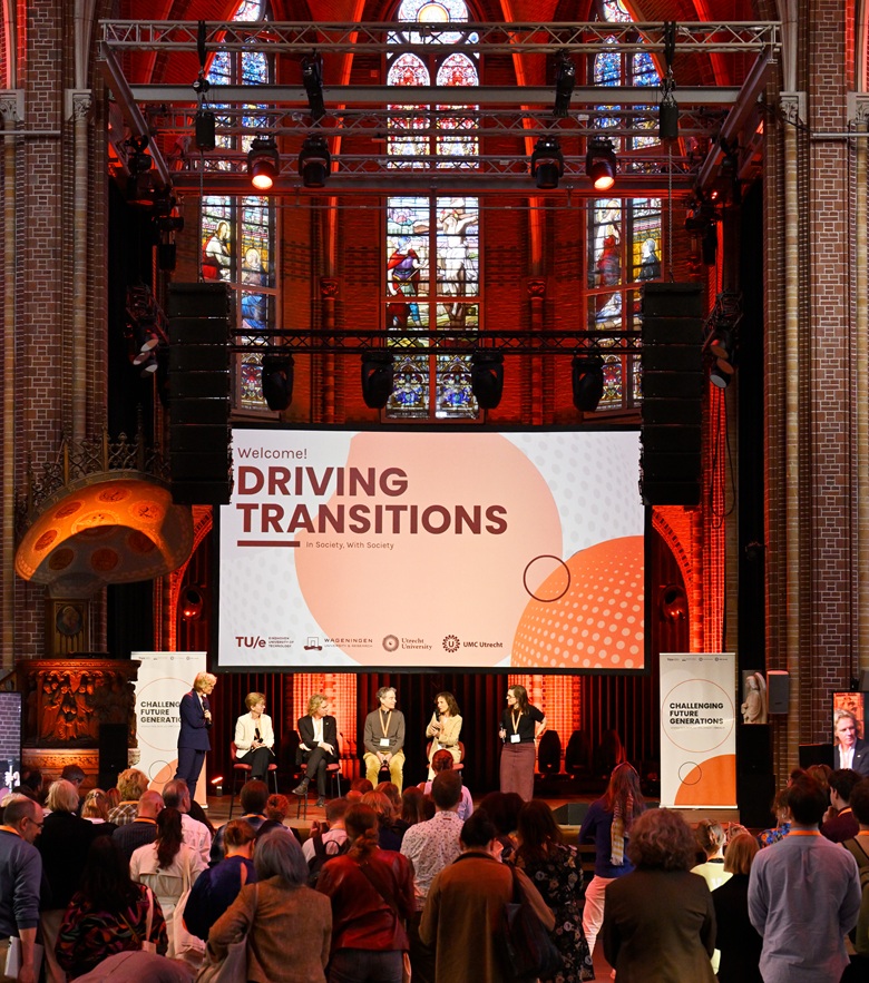 Silvia Lenaerts, rector magnificus van TU/e, opende de conferentie en reflecteerde op de rol van EWUU in de samenleving: ‘Transities zoals we die vandaag bespreken, op het gebied van energie, gezondheid, democratie en steden, vragen om langdurige inzet van mensen en instellingen die bereid zijn zich voor langere tijd te verdiepen in complexe vraagstukken. Daarom is een dag als deze zo belangrijk. EWUU bestaat omdat onze vier instellingen hebben besloten dat sommige maatschappelijke uitdagingen te groot zijn om afzonderlijk aan te pakken. De mensen die hier vandaag zijn, kiezen ervoor om over grenzen van instellingen, disciplines en aannames heen te werken. Dat heeft geleid tot een waardevolle community en gedeelde manieren van samenwerken, en waarin we met elkaar begrijpen dat de belangrijkste resultaten vaak niet binnen de looptijd van één enkel project zichtbaar worden.’