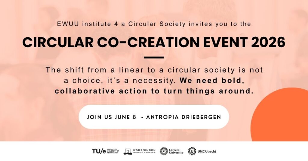 Nu is het tijd om samen in actie te komen. Daarom nodigt het EWUU Institute 4 a Circular Society je uit voor het Circular Co-Creation Event op 8 juni 2026 bij Antropia in Driebergen.